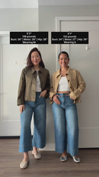 - Med-weight denim with gentle stretch, crisp yet fluid in drape