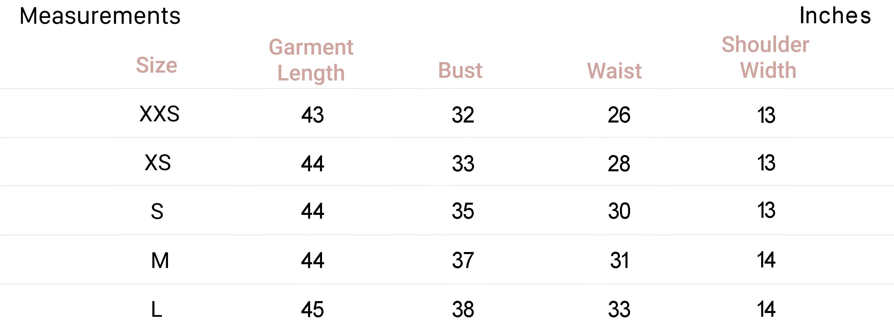 | XXS | 0 | 32 | 4 | 29.5-31 | 22-24 | 32.5-34 |