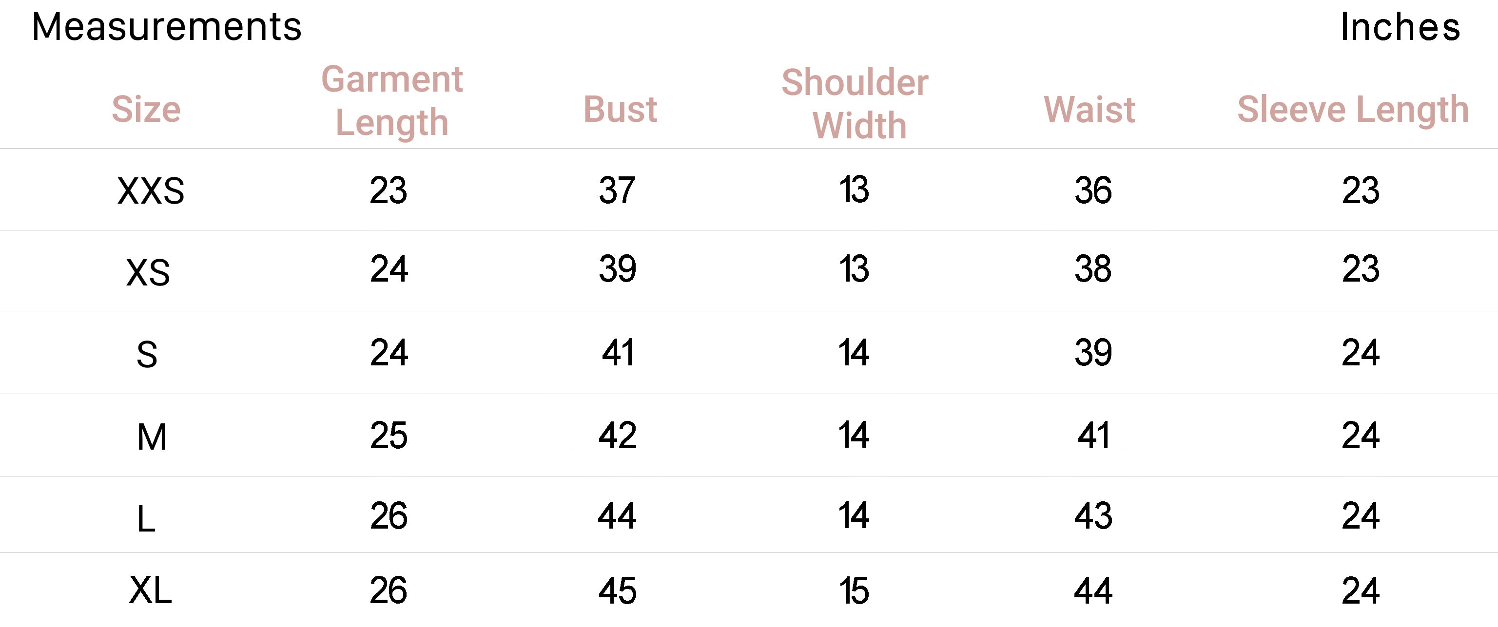 | XXS | 22-24 |