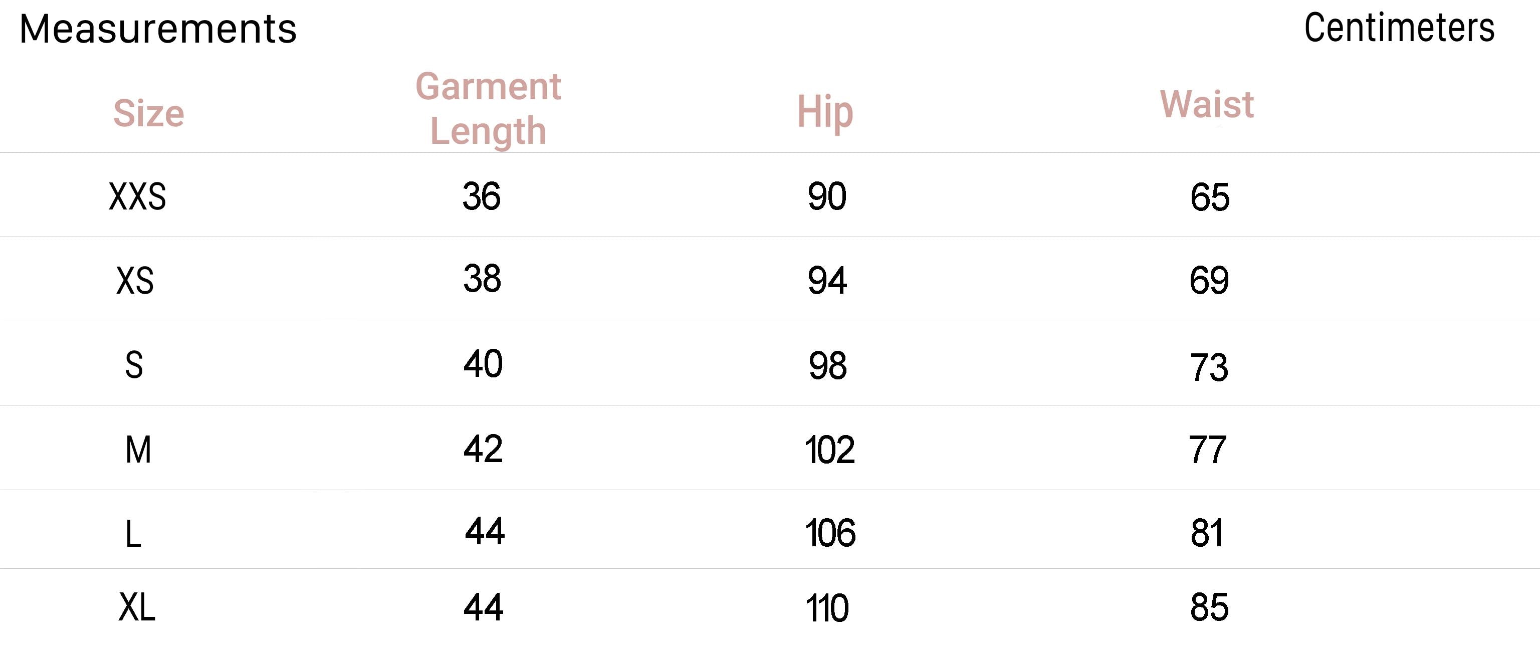 | Size | US | EUR | UK | Bust | Waist | Hip |
