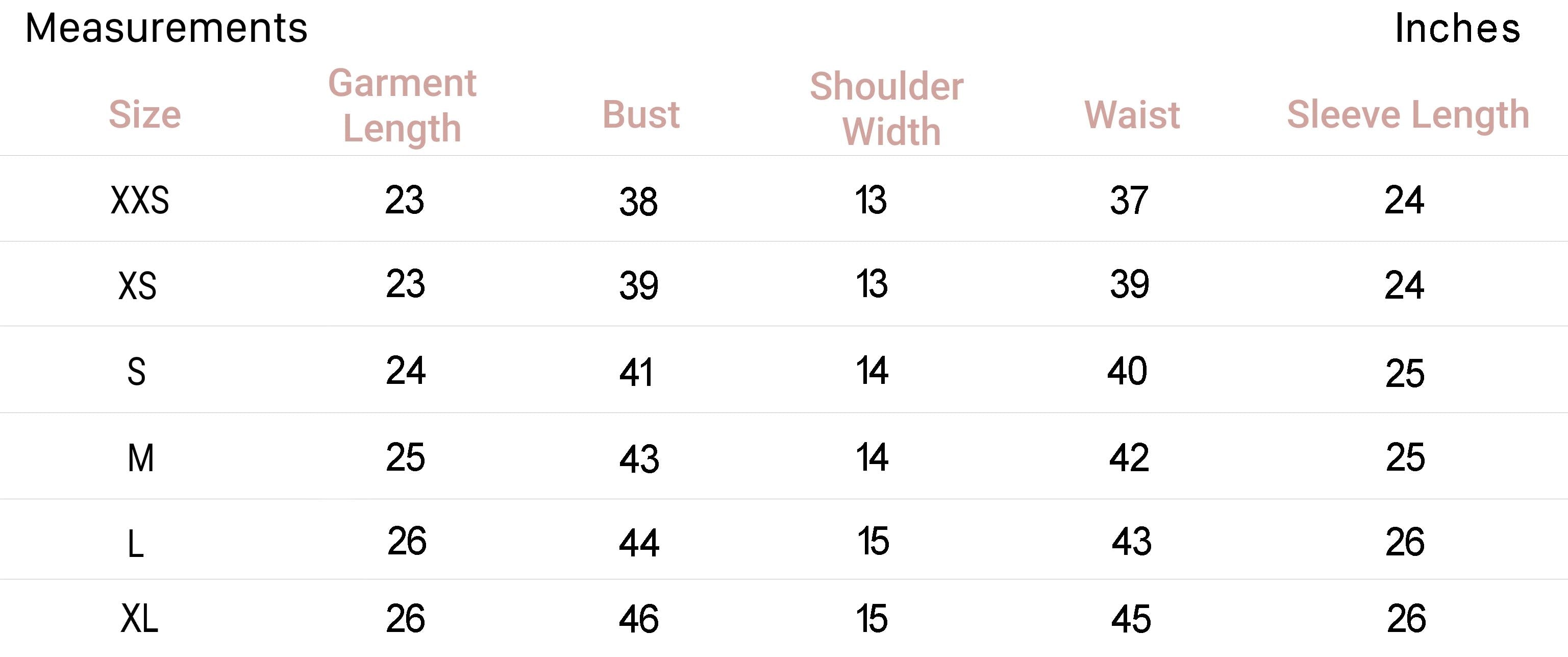 | XS | 2 | 34 | 6 | 31-32.5 | 25-26 | 34-35.5 |