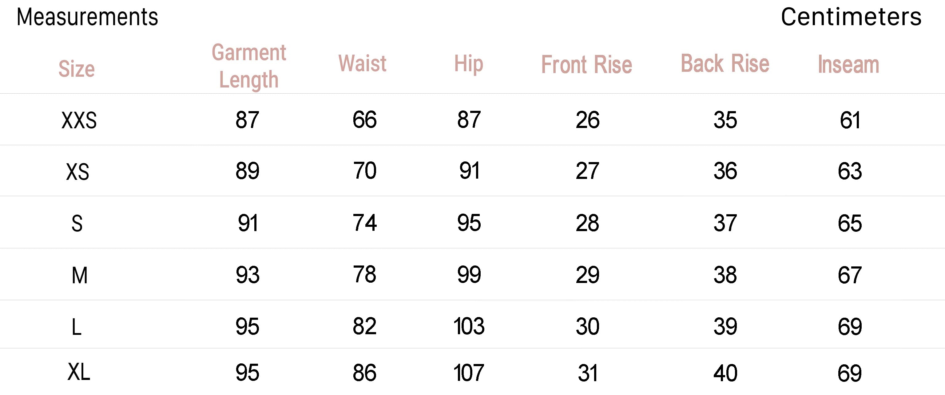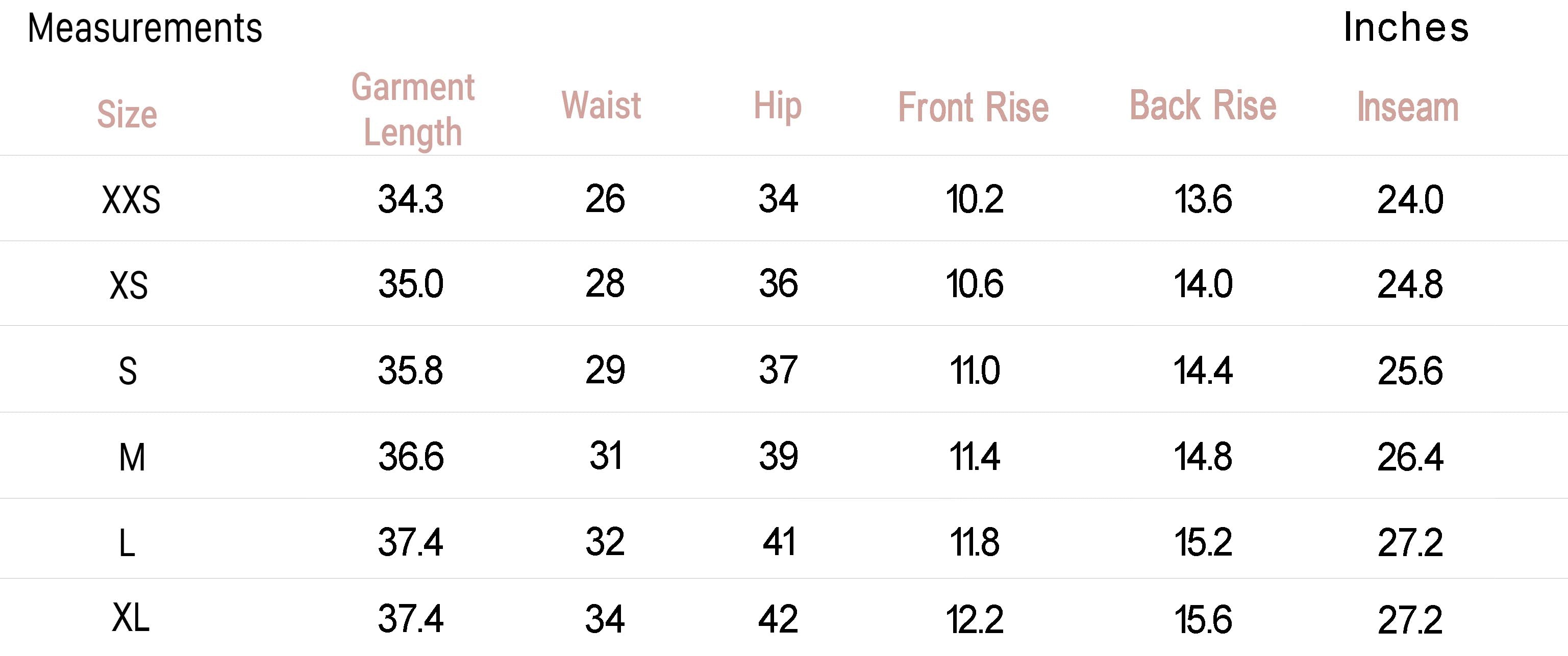 - Size XS - Inseam: 24.8", Rise: 14"