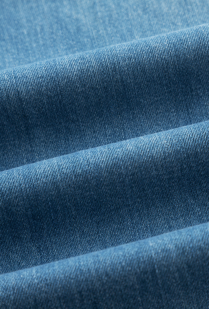 - Med-weight denim with gentle stretch, crisp yet fluid in drape