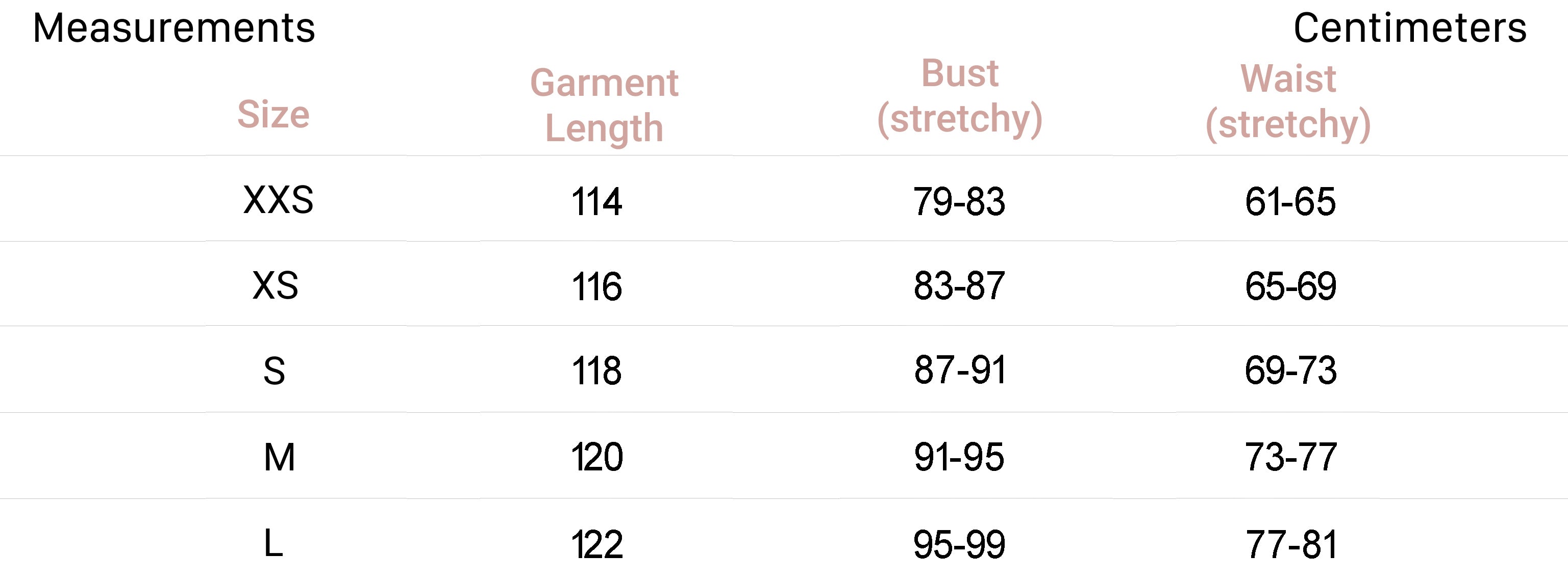 | XXS | 22-24 |